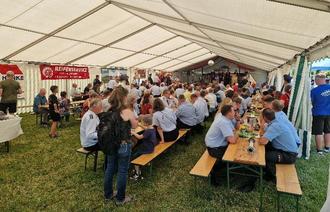 Für das leibliche Wohl gab es kühle Getränke aus Bierwagen und Bar, leckere Grillspezialitäten sowie ein von der Jugendfeuerwehr organisierter Kuchenbasar.