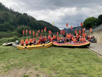Nun hieß es fleißig paddeln. Wir feuerten uns gegenseitig an – jedes Boot wollte als Erster im Ziel sein. Nach ca. 4 Stunden körperlicher Anstrengung, verbunden mit ein paar Neckereien und dem ein oder anderen Badegast in der Elbe, erreichten wir das sichere Ufer in Bad Schandau.