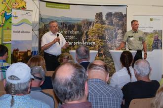 Welchen Stellenwert hat dabei der Naturschutz? Was heißt das für die Entwicklung des Tourismus in der Region? Was wird aus den Wanderwegen und Stiegen, aber auch Rettungswegen für die Feuerwehr und Notfälle? Und wie darf man sich die Waldentwicklung im Nationalpark und im angrenzenden Landschaftsschutzgebiet vorstellen? Diese und andere Konzepte wurden beim ersten gemeinsamen Gesprächsforum des Landkreises Sächsische Schweiz – Osterzgebirge und der Nationalparkverwaltung Sächsische Schweiz von Sachsenforst vorgestellt und diskutiert, das am 6. September im Soli Vital in Sebnitz stattfand.