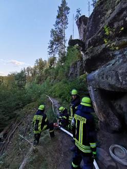 Zur Brandbekämpfung wurde von der FFw Bad Schandau mittels Turbotauchpumpe das Wasser aus der tiefgelegenen Kirnitzsch der Verstärkerpumpe zugefördert. Die FFw Ottendorf nutzte einen Schwimmsaugkorb, welcher durch Kameraden der FFw Hinterhermsdorf zur Verfügung gestellt wurde, um das Wasser aus der flachen Kirnitzsch zu fördern. Nach den B- bzw. C-Zubringerleitungen erfolgte an der Einsatzstelle die Wasserabgabe über D-Leitungen und Strahlrohre.