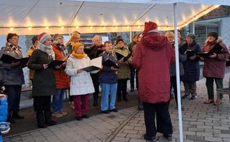 Quasi eingesungen hatte sich unsere Chorgemeinschaft am 07. Dezember zum Bad Schandauer Weihnachtsbummel. Im Bereich der Sendig-Baude am oberen Fahrstuhl stimmten wir mit Liedern zum Advent die Anwesenden nicht nur ein, sondern luden auch zum Mitsingen ein - einfache Lieder, die den Meisten durchaus noch bekannt sind. Da unser Chorleiter an diesem Tag leider verhindert war, gab uns unsere Sängerin Ricarda Krüger den richtigen Ton an.