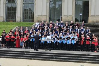 Schlussgesang aller drei Chöre auf der großen Treppenanlage