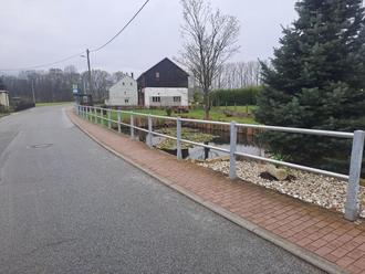 Im Stadtteil Waltersdorf, am unteren Teich, wurde auf einer Länge von ca. 40 m das marode Holzgeländer durch ein verzinktes Metallgeländer ersetzt.