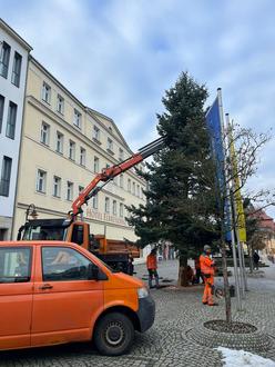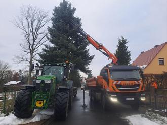 Transport und Aufstellen des Baumes in Bad Schandau: