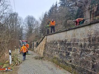 Durch den Einsatz der notwendigen Technik und vom Personal des Bauhofes konnten nach Baumfällarbeiten auf dem Friedhofsgelände die Äste beseitigt und entsorgt werden.