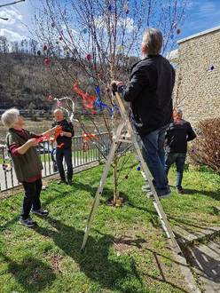 Am 05. April 2025 war es dann soweit. Bei sonnigem Wetter folgten viele Schmilkaer Einwohner dem Aufruf der Gruppe „Ortsfreunde von Schmilka“, trafen sich am Mehrzweckgebäude und putzten und schmückten was das Zeug hielt. Da blieb so mancher Wanderer stehen und erfreute sich an den bunten Eiern und den lustigen Osterdekorationen.