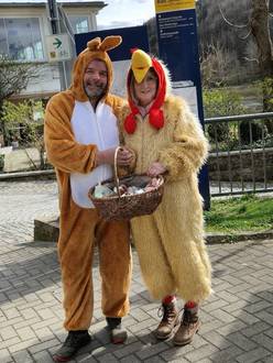 Es dauerte gar nicht lange, da stattete sogar der Osterhase höchstpersönlich mit seiner Frau, alias Frank und Jana Kerger, den fleißigen Helfern einen Besuch ab und belohnte alle mit kleinen Überraschungen.