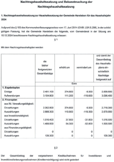 1. Nachtragshaushaltssatzung zur Haushaltssatzung der Gemeinde Harsleben für das Haushaltsjahr 2024