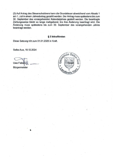 Auf Grund der §§ 5,8 und 99 des Kommunalverfassungsgesetz Sachsen-Anhalt vom 17.06.2014 (GVBl. LSA S. 288), der §§ 1, 2 und 3 des Kommunalabgabengesetzes des Landes Sachsen-Anhalt i. d. F. der Bekanntmachung vom 13.12.1996 (GVBl. LSA S. 405), der §§ 1 und 2 des Gesetzes über die Einführung einer optionalen Festsetzung differenzierender Hebesätze im Rahmen des Grundvermögens bei der Grundsteuer des Landes Sachsen-Anhalt (Grundsteuerhebesatzgesetz Sachsen-Anhalt - GrStHsG LSA) i. d. F. der Bekanntmachung vom 08.11.2024 (GVBl. LSA 2024 S. 312), der §§ 1 und 16 des Gewerbesteuergesetzes i. d. F. der Bekanntmachung vom 15.10.2002 (BGBl. I S. 4167) in der jeweils geltenden Fassung sowie der §§ 1, 25 und 28 des Grundsteuergesetzes vom 7. August 1973 (BGBl. I S. 965) in der ab dem 01.01.2025 geltenden Fassung des Gesetzes zur Reform des Grundsteuer- und Bewertungsrechts vom 26.11.2019 (BGBl. I, S. 1794), zuletzt geändert durch Artikel 21 des Gesetzes vom 16.12.2022 (BGBl. I S. 2294) hat der Gemeinderat der Gemeinde Selke-Aue in seiner Sitzung am 28.11.2024 folgende Satzung beschlossen: