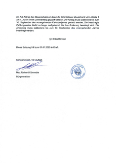 Diese Satzung tritt zum 01.01.2025 in Kraft.