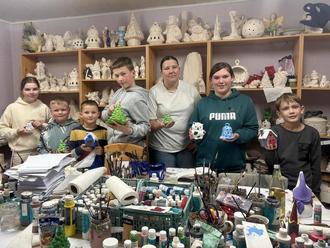 Beim Weihnachtsbasteln hatten die jüngeren Mitglieder des Spielmannszuges Harsleben in der Keramikwerkstatt in Wegeleben viel Spaß. Foto: Spielmannszug