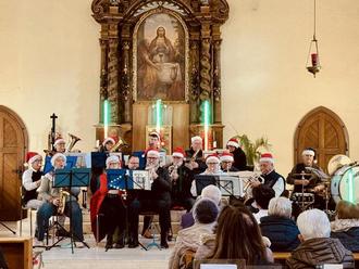Viel Beifall gab es für den Solo-Trommler Reinhardt Kosinski und seine Einlagen. Unter der Leitung von Thomas Hellmich spielten die Musiker die bekanntesten Weihnachtslieder, die im voll besetzten Kirchenraum stimmungsvoll aufgenommen wurden. Dazu trug Leonhardt Benser mit seinem Solo auf der Violine bei.
