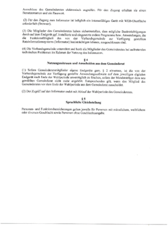 (1) Die Mitglieder des Gemeinderates erhalten ein Datenblatt mit der persönlichen Internetadresse und können damit auf die Einladungen und Sitzungsunterlagen des Gemeinderates bzw. der Ausschüsse des Gemeinderates elektronisch zugreifen. Für den Zugang erhalten sie einen Benutzernamen und ein Passwort.