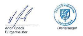 (5) Zeit, Ort und Tagesordnung der Sitzungen des Gemeinderates und seiner Ausschüsse sowie der Zeitpunkt und die Abstimmungsgegenstände der Beschlussfassung erfolgt im Internet unter folgender Adresse https://www.vorharz.net/de/bekanntmachungen/. Die Bekanntmachung ist mit ihrer Bereitstellung unter der Internetadresse bewirkt.