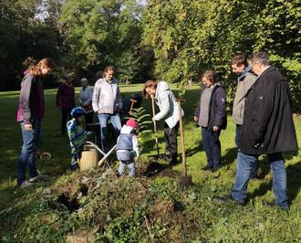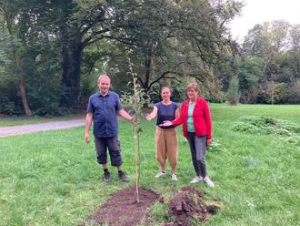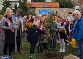 Wo der Baum schon in Adersleben gepflanzt wurde, sollte nun auch die katholische Kirchgemeinde in die Baumpflanzaktion mit einbezogen werden, die in Adersleben "zu Hause" ist. Mit Unterstützung der Allerjüngsten pflanzte die Kirchgemeinde einen Japanischen Schnurrbaum. Mit Buddelschippe wurde er fest im Adersleber Park eingesetzt und leistet nun dem evangelischen Apfelbaum gute Gesellschaft.