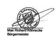 (3) Das Siegel enthält das Stadtwappen nach Abs. 1 mit der Umschrift „Stadt Schwanebeck Landkreis Harz“, dass dem der Hauptsatzung beigefügten Dienstsiegelabdruck entspricht.