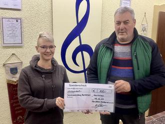 Isabell Voß bedankt sich bei Uwe Hildebrandt für die Unterstützung des Spielmannszuges. Foto: Dieter Kunze