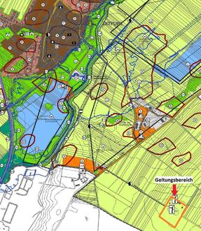 (Kartenauszug vom Geltungsbereich der 8. Änderung des Flächennutzungsplanes „Teilplan 5 – Gemeinde Ditfurt“)