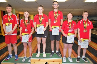 Am 04.02.2023 fanden in Wolfsburg die Landesjugendmeisterschaften im Dreibahnenspiel statt. Diese Art gilt als Königsdisziplin im Kegelsport, denn man muss alle drei Bahnarten Bohle, Schere und Classic beherrschen, um erfolgreich zu sein. Für uns waren Laura und ihr Bruder Florian Weigelt sowie Josephine Hartung am Start. In spannenden Wettkämpfen konnten wir einiges abräumen. So hat Laura ihren Titel im Einzel bei der u18 weiblich erfolgreich verteidigt und wurde neue und alte Landesmeisterin. Florian wurde leider noch mit dem letzten Starter abgefangen und wurde Vizelandesmeister bei der u14 männlich. Josephine belegte bei ihrer ersten LJM einen guten 9. Platz im Einzel. Des Weiteren wurde Laura mit Jennifer Heine aus Ditfurt Vizelandesmeister bei der u18 weiblich im Doppel. Der Medaillenregen wurde dann für Laura mit dem Vizelandesmeister bei der u18 Mixed mit Laurenz Fels aus Heudeber beendet. Florian und Josephine belegten einen guten 6. Platz bei der u14 Mixed.