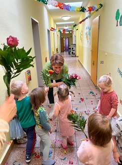 Am 28.02.2023 haben wir unsere liebe Kollegin Antje Ehlert mit Blumen, Konfetti, Lieblingsliedern und ganz viel Emotion in den Ruhestand verabschiedet. Wir bedanken uns für eine ganz tolle Zusammenarbeit, für die ganzen schönen Momente, die musikalische Begleitung, deinen Ideenreichtum, dein Engagement in Kita und Hort und einfach dafür, dass du unser Team über solange Zeit unterstützt und bereichert hast.