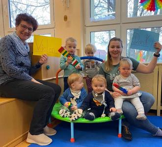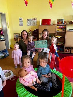 Ein großer Dank geht an Kathrin Brock, die sich stellvertretend für die Eltern der Krippengruppe „Bärchen“ als Überbringerin der Überraschung bereiterklärte und die Kinderaugen somit zum Strahlen brachte.