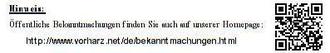 Es betrifft folgende Mitgliedsgemeinden der Verbandsgemeinde Vorharz: