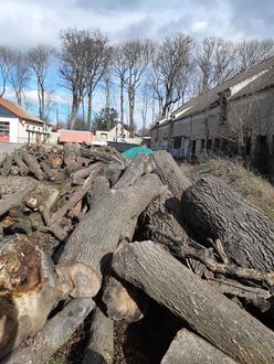 Das Stammholz von Eschen, Buchen, Ahorn, Linden, Robinien und Kastanien lagert auf einer für LKW uneingeschränkt befahrbaren befestigten und zugänglichen Fläche.