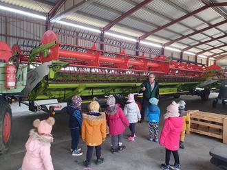 Beim Besuch der hofeigenen Werkstatt hatten wir die Möglichkeit, uns einen Mähdrescher aus nächster Nähe anzusehen. Nicht nur einige Kinder, sondern auch die Erzieherinnen konnten es sich im Führerhaus bequem machen.