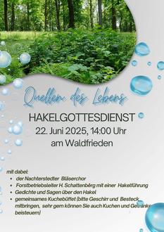 | 14:00 Uhr | Hakel-Gottesdienst am Waldfrieden | |