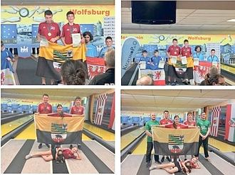 Am ersten Maiwochenende fanden die Deutschen Jugend-Meisterschaften im Dreibahnenspiel in Wolfsburg statt. Für den Hederslebener SV 31 waren Amy Christiani, Josephine Hartung und Florian Weigelt am Start. Eine große Ehre wurde Amy zu teil, denn sie war Fahnenkind und durfte somit die Sachsen-Anhalt Fahne in die Halle tragen. Als erstes mussten Amy und Josephine im weiblichen u14 Doppel auf die Bahn, geprägt von einer ganzen Reihe Nervosität vor einer großen Kulisse belegten sie am Ende einen sehr guten 7. Platz. Große Hoffnungen bestanden im u14 Mixed mit Josephine und Florian, leider waren zu viele Individuelle Fehler dann der Auslöser das auch hier am Ende Platz 7 dabei rauskam. Das Highlight am ersten Tag war dann das männliche u14 Doppel. Hier spielte Florian mit Florian Köhn aus Ballenstedt zusammen, die beiden spielten im ersten Durchgang wie entfesselt und legten ein super Ergebnis vor an dem sich alle anderen Paare die Zähne ausbeißen sollten. Am Ende wurde es zwar nochmal eng aber dennoch reichte es am Ende zum DEUTSCHEN MEISTER TITEL gefolgt von Freudentränen. Am zweiten Tag musste Josephine dann im Einzel antreten mit einer Menge Ehrgeiz und einem klaren Ziel vor Augen startete sie ganz ordentlich. In der Folge waren jedoch drei von zwölf zu bespielenden Bahnen nicht so ergiebig auch eine riesen Aufholjagd auf Classic nützte am Ende nichts. Mit Platz 6 hatte sie ihr eigenes Ziel eine Medaille zu holen vom Ergebnis knapp verpasst, und da wo am Vortag Freudentränen flossen waren diesmal Tränen der Enttäuschung angesagt. Dennoch waren es super Meisterschaften die mit einer Deutschen Meisterschafts-Medaillen gekrönt wurden.
