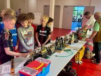 Herr Werner Schachtschabel mit seinem Enkel Tom stellten ihre Dampfmaschinen vor und Kinder durften sie auch ausprobieren. Ein toller Tag im Sinne von Dr. Wilhelm Schmidt wird zur Tradition für den Jahrgang 4.
