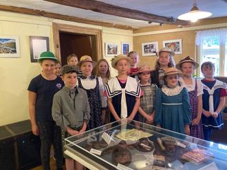 Unter diesem Motto stand unsere diesjährige Abschlussfahrt der "Plattsprecher AG" der Grundschule "Dr. Wilhelm Schmidt" in Wegeleben. Eine schöne Tradition ist es, einen Abschluss für die Kinder zu organisieren- unser Ziel war die alte "Elementarschule" in Gernrode. Dort erwartete uns unsere Lehrerin "Frl. Böckelmann" zu einer Schulstunde wie im 19. Jahrhundert. Wir erfuhren etwas über die altdeutsche Sprache und über die Rechenweise von Adam Ries. Am schwersten fiel uns das Stillsitzen auf den harten Bänken. Spaß machte es uns, aus dem Kostümfundus entsprechende Kleider anzuziehen. In dieser Stunde haben wir viel Wissenswertes über den Unterricht in der Vergangenheit erfahren.