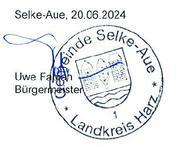Auf der Grundlage des § 8 des Kommunalverfassungsgesetzes des Landes Sachsen-Anhalt i. V. m. § 13 Abs. 4 des Kommunalwahlgesetzes des Landes Sachsen-Anhalt und § 9 der Kommunalwahlordnung des Landes Sachsen-Anhalt in den derzeit geltenden Fassungen hat der Gemeinderat Selke-Aue am 20.06.2024 folgende Satzung beschlossen: