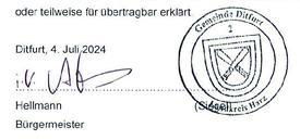 1. Nachtragshaushaltssatzung zur Haushaltssatzung der Gemeinde Ditfurt für das Haushaltsjahr 2024