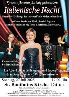 Am Sonntag den 27.07.2025 um 19:00 Uhr freuen wir uns auf Una Notte Italiana.