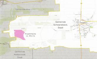Das Plangebiet umfasst mehrere Flurstücke in der Flur 9 der Gemarkung Schwanebeck mit einer Größe von ca. 35,6 ha.