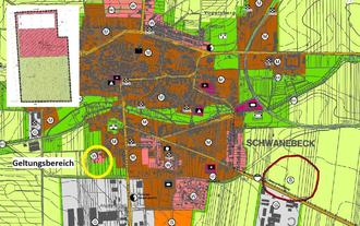 (Geltungsbereich mit Planzeichnung des Bebauungsplanes „Landweg“ in der Stadt Schwanebeck)