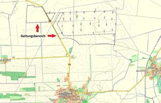 (Kartenansicht des Plangebietes zum Bebauungsplan „Windpark Schwanebeck – Erweiterung“)
