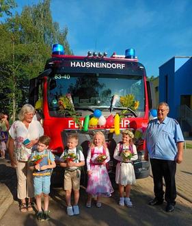 Wie in jedem Jahr schmückt unsere Feuerwehr das Löschfahrzeug zum Abholen der ABC- Schützen am Tag der Einschulung in Hausneindorf.