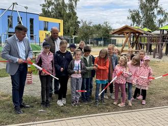 Über das Kinderfest anlässlich der Spielplatzeröffnung freute sich neben den Vertretern der Verbandsgemeinde Janine Grau und Annett Heitmann auch Landrat Thomas Balcerowski (CDU). „Die 200.000 Euro, die wir als Landkreis im Jahr für Spiel- und Bolzplätze bereitstellen, sind gut angelegt“. So entstehen neue Kommunikationsplätze in den kleinen Orten. „Die mussten zuerst sparen. Dabei ist einiges weggefallen“, bedauerte er. Das neue Förderprogramm sei ein wahrer Renner. Die Verbandsgemeinde Vorharz habe da gut zugegriffen, so wie kürzlich die Eröffnung in Wegeleben gezeigt habe. Natürlich sei die Bereitstellung der Eigenmittel für die Kommunen keine leichte Aufgabe.