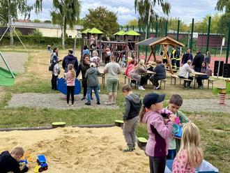 Die Seniorenwohnanlage nahe der Schule wurde vor drei Monaten eröffnet. „Vor drei Jahren gab es die ersten Gespräche mit den Investoren“, so Speck. Das Vorhaben sei in kurzer Zeit realisiert worden und komme bei den Bewohnern bestens an. Sein Dank galt dem Landrat und den Gemeinderäten: „Die ziehen alle mit“. Ermöglicht haben das Eröffnungsfest mit der Hüpfburg auch die Gemeindearbeiter, die Mitglieder der Fördervereine und die Freiwillige Feuerwehr. Landtagsabgeordnete und Gemeinderatsmitglied Monika Hohmann (Die Linke) lobte den neuen Treffpunkt in der Ortsmitte mit den verschiedenen Sitzmöglichkeiten auch für Erwachsene.