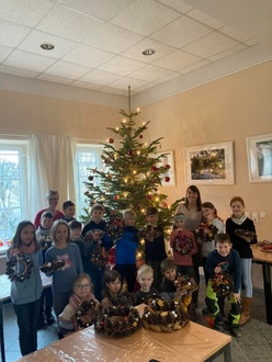 Plätzchen, Tee und einen Zapfenkranz basteln standen auf dem Programm. Wir hatten viel Spaß und bedanken uns bei Frau Rönckendorf für den tollen Vormittag.