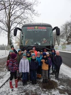 Schon die Anreise war etwas Besonderes, denn mit dem RB Fan-Bus ging es von der Grundschule Bennewitz bis zum Gymnasium. Alle waren sehr aufgeregt, wie das Märchen wohl sein würde, wenn man es nicht als Film sieht, sondern als Stück von Schülern.