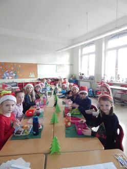 Kurz vor Weihnachten ließen sich die Kinder der Klasse 2b ihr Frühstück aus den weihnachtlich gefüllten Brotdosen schmecken. Auf dem Plan standen auch Basteleien, Spiele und ein Weihnachtsmärchenfilm.
