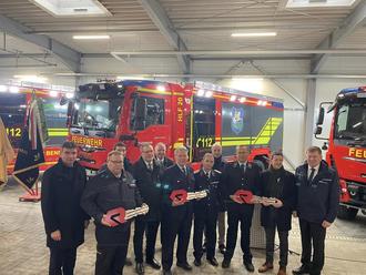 Am 05.01.2023 war es so weit … alle 4 Fahrzeuge aus der Sammelbeschaffung für die 4 Stück HLF 20 wurden heute offiziell und feierlich an uns, an die Freiwillige Feuerwehr Bennewitz, an die Freiwillige Feuerwehr Rötha und an die Freiwillige Feuerwehr Großpösna übergeben.