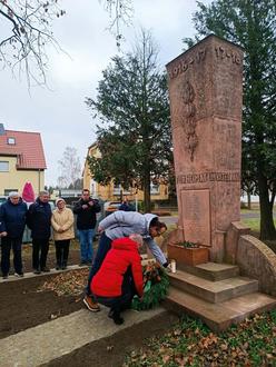 Nachdenkliche und andächtige Stimmung herrschte bei der Einweihung der neuen Namenstafeln am Denkmal für die Kriegsgefallenen Deubener Soldaten im 1. Weltkrieg. Verwittert war das Gestein und damit „verblich“ auch das Andenken und die Erinnerung an die 29 Männer, die einst im Kriegsdienst ihr Leben ließen. Das schöne Monument aus Rochlitzer Porphyrtuff fristete seit vielen Jahren ein eher tristes Dasein zwischen den großen Lebensbäumen bis der „Weckruf“ einer Privatperson, das Sanierungsvorhaben einleitete. Dank der Spender vieler Menschen konnte wir als Heimatverein Leben in Deuben e.V. in die finanziellen Mittel für die Erneuerung der Steintafeln aufbringen, so dass die Namen in grüner Schrift nun wieder auf dem roten Welterbe-Stein lesbar sind. Wir danken allen Beteiligten für Ihr finanzielles, persönliches sowie fachliches Engagement um die Erneuerung der Namenstafeln. Mögen die Namen uns daran erinnern, dass Krieg immer zu Verlust, Leid und Trauer führt, aber nie zu Heldentum.