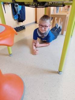 Der vorletzte Herbstferientag begann leider mit Regen, der sich über den gesamten Tag hinauszog. Trotzdem fanden wir viel Spaß. So organisierten die Erzieher einen Parcours im Flur, den die Kinder absolvieren durften. Dieser war schon sehr schwierig und teils wacklig, also ein toller Geschicklichkeitstest. Mit Bravour haben diese alle Kinder gemeistert.