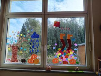 … und so sehen auch unsere Fenster und die Zimmerdekorationen aus – SCHÖN BUNT. Die Kinder zauberten mit ihrer vollen Kreativität die herrliche Vielfalt des Herbstes in die Horteinrichtung. Es wurde gebastelt, geklebt und gemalt sowie gefühlte 1000 Mal die Bilder an den Fenstern wieder entfernt, weil es noch nicht perfekt genug war. Nun kann der Herbst kommen, denn auch diese Jahreszeit hat seine tollen Seiten.