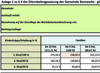 Anlage 1 zu § 4 der Elternbeitragssatzung der Gemeinde Bennewitz - gültig ab 01.01.2024