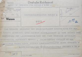 Abb. Telegramm zur Auflösung von Umsiedlerlagern, Februar 1946